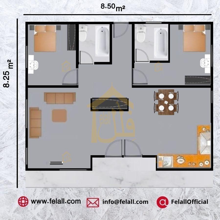 🛌2 oda | 🔲 1 salon | 🛀 2 banyo