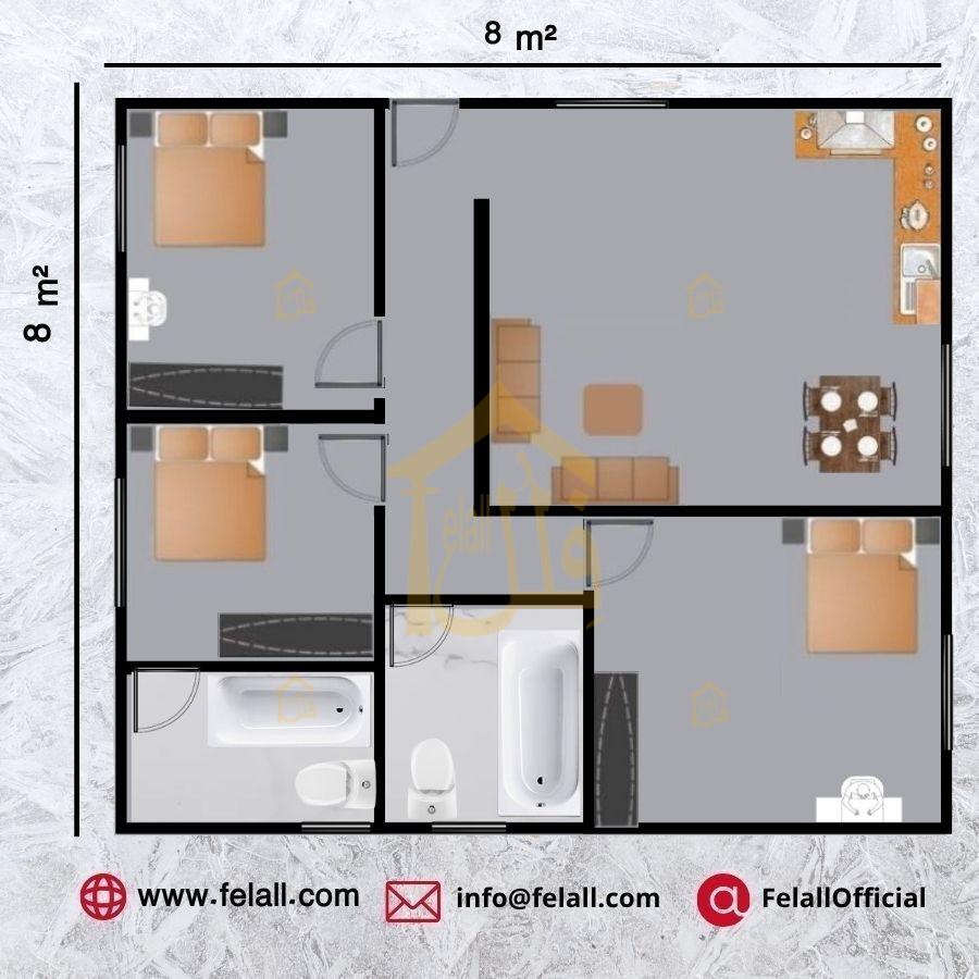 🛌3 oda | 🔲 1 salon | 🛀 2 banyo